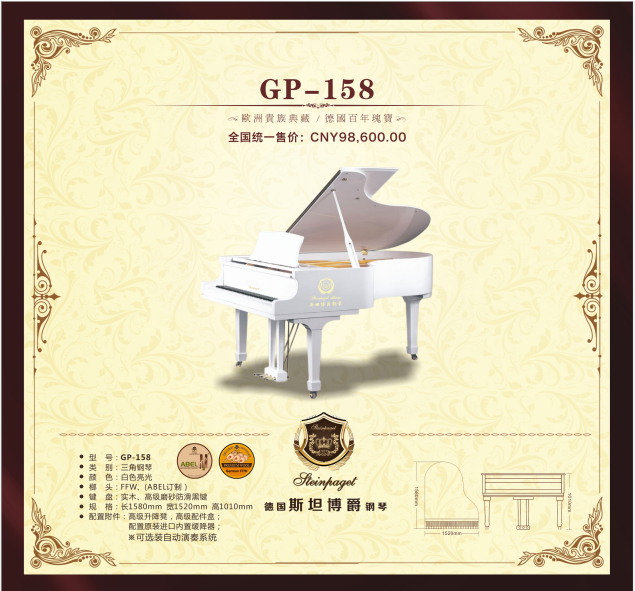 斯坦博爵是一家專注于STEINPAGET立式鋼琴與三角鋼琴的研發、生產與銷售的公司。我們巧妙融合先進的德國制琴工藝與獨特鋼琴設計,致力于打造卓越品質。我們以三大核心價值為基石:經營理念追求“高效 · 品牌 · 服務”,產品理念恪守“傳承 · 創新 · 品質”,服務宗旨奉行“客戶需求即工作,客戶要求即追求。為鑄就非凡品質,我們全方位投入:引進德國、美國、日本尖端設備與優質制琴材料;特邀德國頂級設計師及美國專家顧問傾情指導,傳承歐洲經典工藝與純正德國精髓;斥資打造恒溫恒濕生產車間及成品鋼琴靜置倉,確保全球任何氣候下STEINPAGET鋼琴音質純美、演奏性能始終如一;并在中國構建完善售后服務體系,提供國際水準的真誠服務。